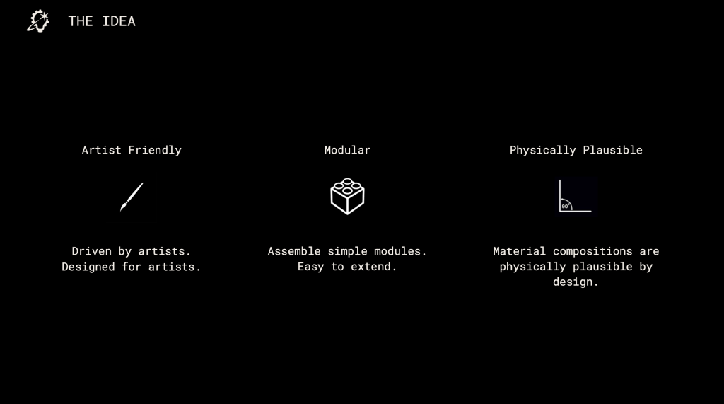 To eliminate this often cumbersome process, Lama was envisioned as a modular system where materials are layered and combined without the need for customized code. It’s a simple, lean, and artist-friendly method that ensures both physical accuracy and creative flexibility.