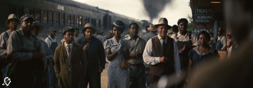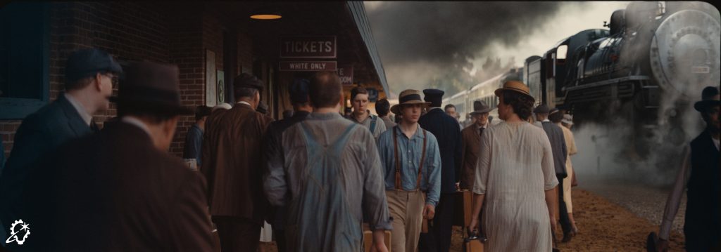 Real-world references are essential to visual effects work, particularly when dealing with such a distinct time period. “We had tremendous art department concepts that production designer Hannah Beachler put together in collaboration with our production visual effects supervisor, Michael Ralla. Those served as the basis for the broader design of the streets, the kind of signage we would get, and other specifics like that. We supplemented them with our own research for period details about the streetlighting and electronics you’d expect around the trains. At that point, they were going through the transition from steam locomotives to electricity. [Environment supervisor] Anton Borisov pored over old photographs to see what Clarksdale really looked like in the 1930s. We went into an extensive research period to figure out the mechanisms that were active on the rail at that point and how the carriages looked, right down to the numbers you see on the side,” Marshall reveals.