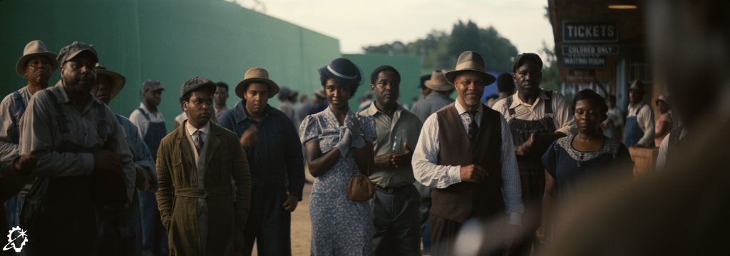 The film’s setting had an impact on ILM’s responsibilities, as Marshall elaborates, “In collaboration with the client, we ensured there was a sense of racial segregation to the environment, so you could see a clear delineation between the side of the tracks reserved for whites and the side that was designated for Black people. It was a key plot point for the movie, and we wanted to do justice to it. Beyond that, our goal was to make everything look as photoreal as possible. The client wanted our work to blend seamlessly so no one would notice that they occasionally relied heavily on visual effects. In certain cases, the visual effects took over the majority of the frame, but it always had to disappear and be completely invisible.”