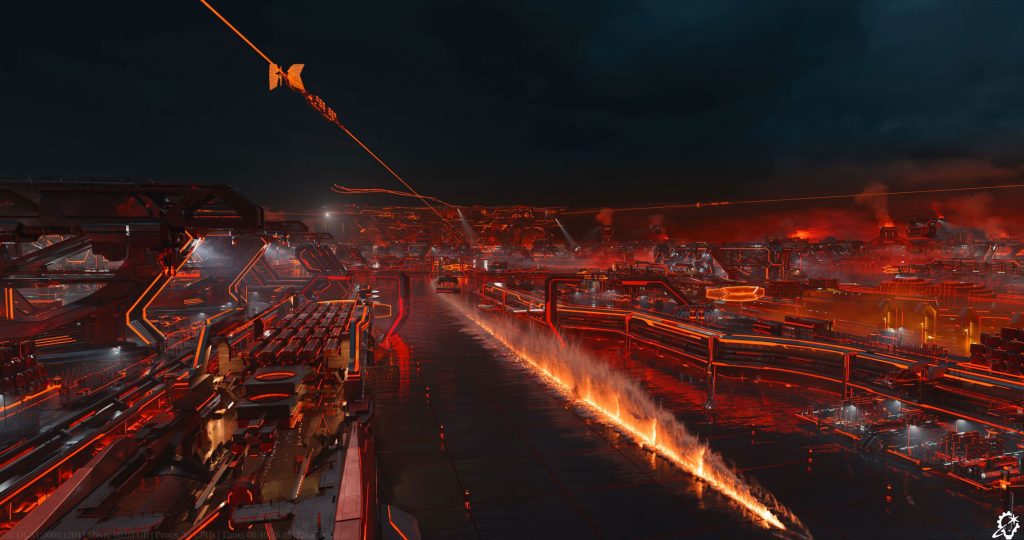 Seeking to furnish the Grid with “scale and purpose,” Capogreco researched ports and military facilities as a way to subtly infuse features that would cause audiences to recognize distinct areas, such as factories and military zones, within the Dillinger Grid.